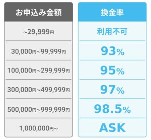 調査した日は10万円の利用で実質93%の換金率を提示されました。