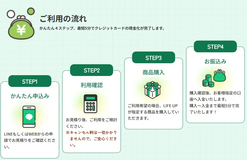 数ある現金化サービスの中でも評判のLIFE UP(ライフアップ)を、