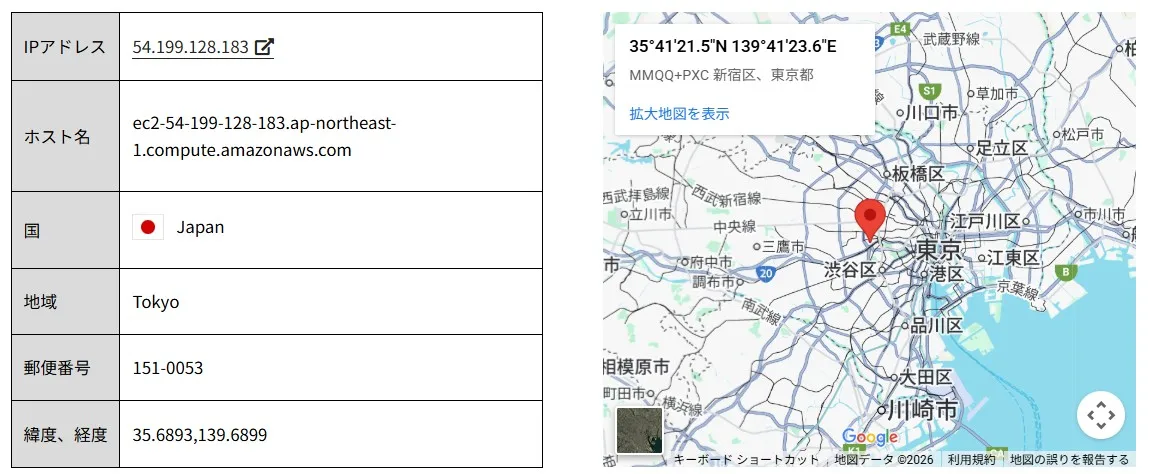 所在地に近い場所からアクセスしていることが確認できました。