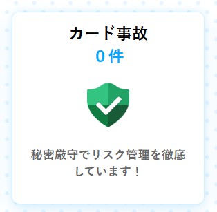 創業以来カードトラブルゼロという実績は、安全性への自信の表れです。