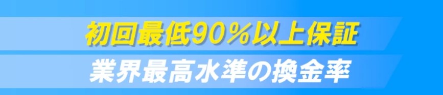 お客様に満足していただくため、初回利用のお客様には最低換金率90%以上を保証しています。