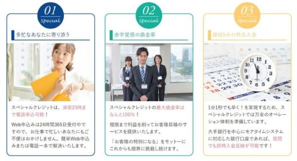 スペシャルクレジットは利用者に対してお客様主義のモットーから親身になって対応してくれるので、現金化初心者でも緊張することなく申し込みが出来そうです。