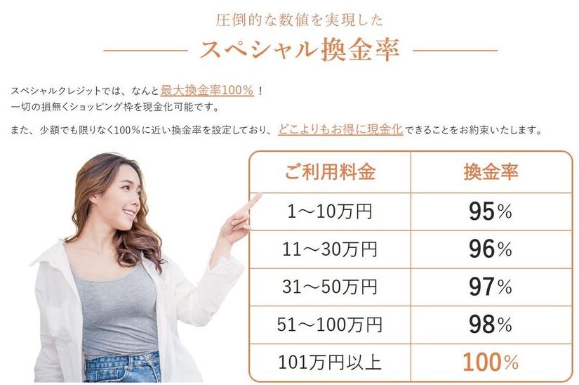 スペシャルクレジットでは、なんと最大換金率100%、一切の損無くショッピング枠を現金化可能なようですが、他社と比較することでその実態がみえてきました、ぜひ最後までご覧ください。