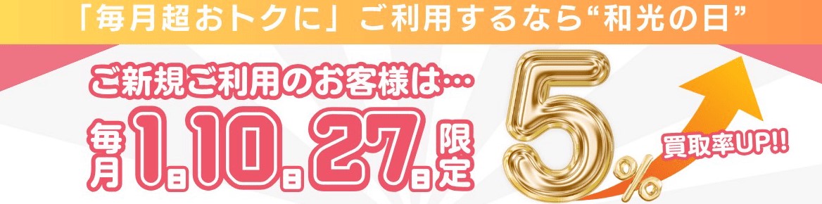 和光クレジットでは毎月1日、10日、27日に換金率が5%アップするキャンペーンを実施しています。